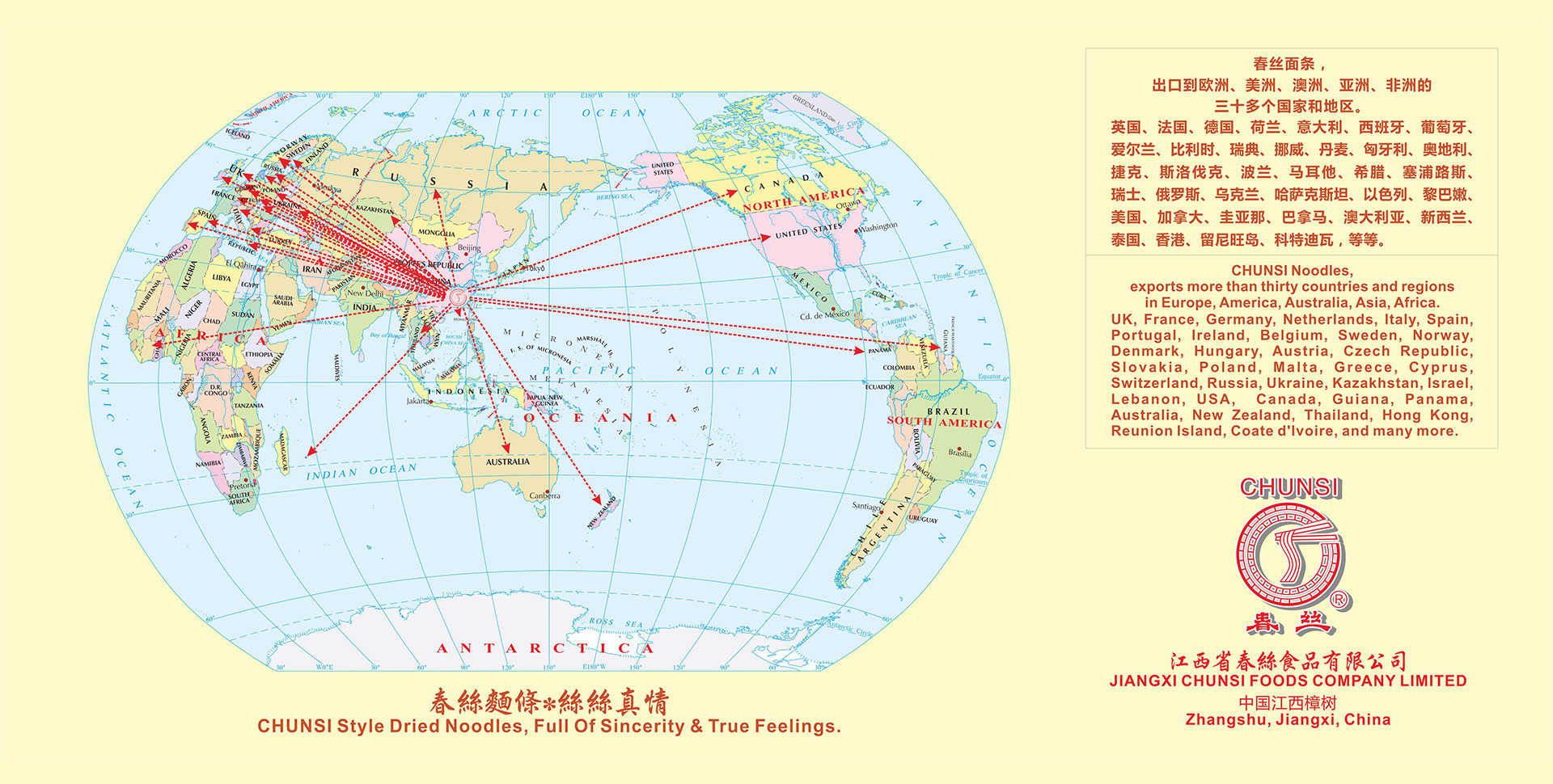 江西省春絲食品有限公司位于江西省樟樹(shù)市。 樟樹(shù)具有制作面條的悠久歷史傳統(tǒng)。古來(lái)即有民謠:“臨江府、清江縣(即樟樹(shù)),六歲伢仔會(huì)做面。” 今春絲公司是江西省內(nèi)具有規(guī)模的面條、米粉加工企業(yè),也是全國(guó)知名的面條生產(chǎn)企業(yè)。春絲公司現(xiàn)擁有“春絲”、“凌波仙子”、“絲絲福”、“春佳”四大品牌,一百多個(gè)品種。所有面條、米粉產(chǎn)品均選用合格原料,符合國(guó)家質(zhì)量和衛(wèi)生標(biāo)準(zhǔn)。產(chǎn)品具有安全健康、面體勁道、柔韌爽滑、易熟、久煮不糊、不渾湯等特色,深受廣大消費(fèi)者歡迎。春絲產(chǎn)品已全面進(jìn)入沃爾瑪、家樂(lè)福、樂(lè)購(gòu)、歐尚、好又多、易初蓮花等大型超市,并遠(yuǎn)銷美國(guó)、日本、英國(guó)、德國(guó)、法國(guó)、西班牙、意大利、葡萄牙、香港等二十多個(gè)國(guó)家和地區(qū)。